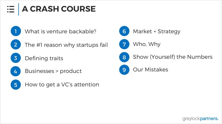 There’s a lot of information out there about how to get a meeting with a VC, so I won’t focus on that here — suffice it to say, cold pitches are viable. At Greylock I read cold emails, and take referrals, and meet founders serendipitously. Meeting entrepreneurs is a core part of my job, and if opportunities happen to arrive in my inbox without any work on my part — all the better.